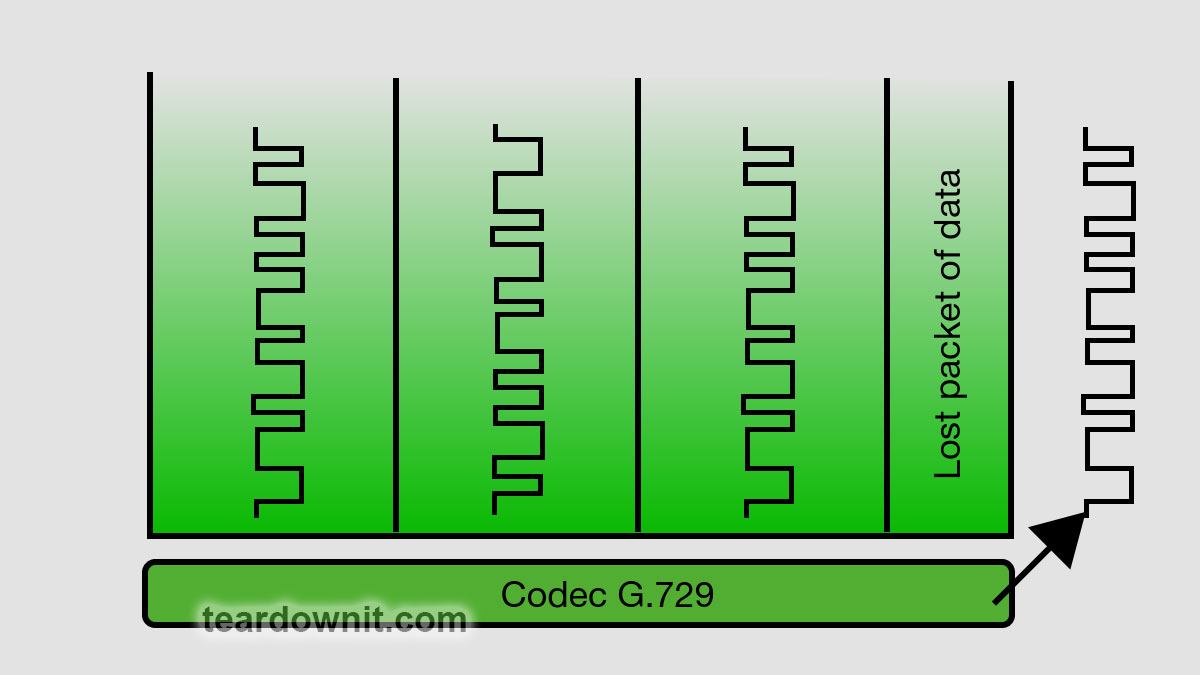 Various mechanisms (see Pic. 2) are used for recovery. If a packet isn't received in expected time (this time can change dynamically), it's considered lost and replaced by the last successfully received packet. Since losing a packet means losing just 20 ms of voice signal, users won't notice the replacement. This is called the "concealment strategy." For example, the G.729 codec, used in traditional digital telephony, tolerates up to 5% packet loss per session. Note that this strategy is only effective for single packet loss.
